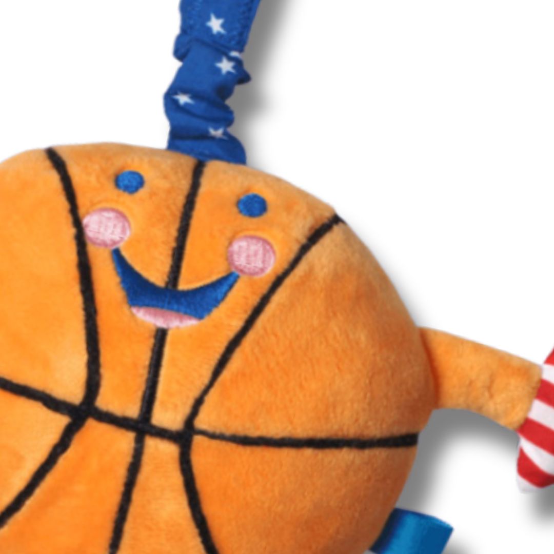Lightweight and easy to hold, it’s comfortable for small hands to grasp, toss and even sink their first three-pointer! Featuring silky ribbons, cute and colorful design, interesting sounds and a nobbly teething ring, it provides excellent ‘zone defense’ during long car rides and diaper changes.